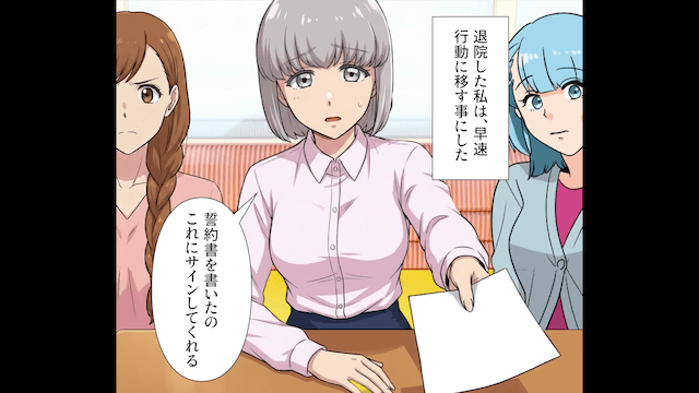 別れを決意した主人公は、退院後、彼氏に誓約書を渡して…。