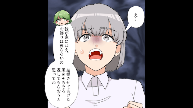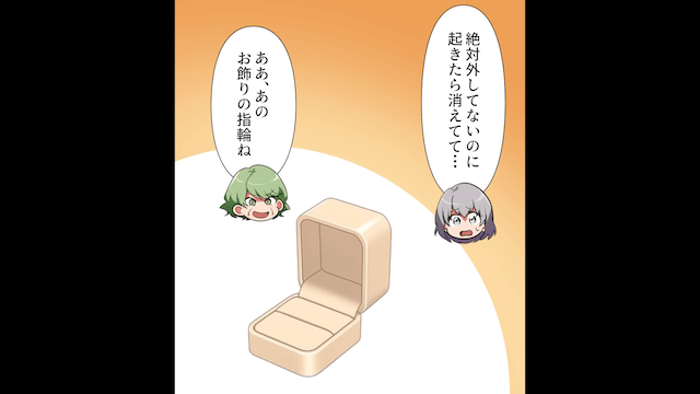 夫に我慢を強いられた主人公は「この人は面倒を避けるためなら私を差し出す、ただそれだけなんだ」と夫の本心に気づきます。 そして翌日、義母に勝手に結婚指輪を売られた主人公がパニックに陥っていると、夫が「まあまあ」と言い…。
