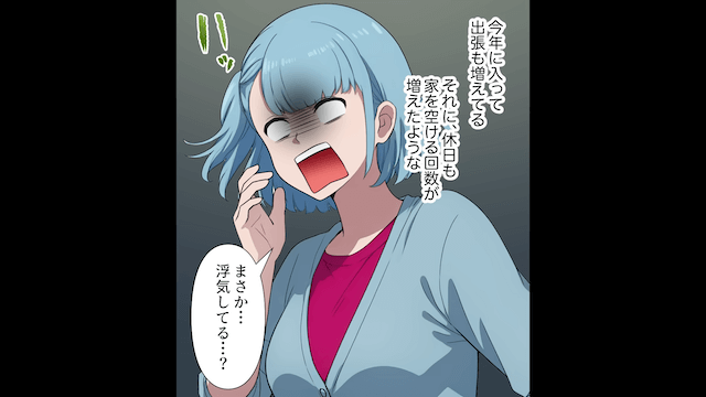 夫は出張から帰ってきたばかりにもかかわらず、おしゃれをして出かけていきました。 主人公は浮気を疑いますが、そんなはずがないと自分に言い聞かせて疑うことをやめます。