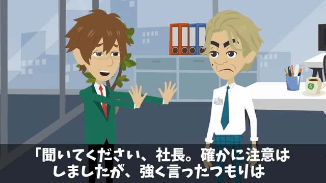 今回は『社長「息子にパワハラしたのでクビで(笑)」俺「いいのね?」後日⇒社長が青ざめたワケ』を紹介します。 主人公が部下の提案を断ると、部下は慌てて引きとめようとしてきました。 そして結局クレーム対応も修正もこなした主人公は、部下に恨まれる覚えはなかったのですが…。