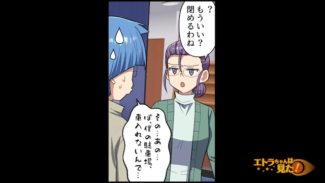 頻繁に隣人に無断駐車をされ、困っていた主人公。 隣人の家に行って注意をするも、隣人は「あー!ごめんねぇ、お友達を車で呼んだから!」と言うだけで…。
