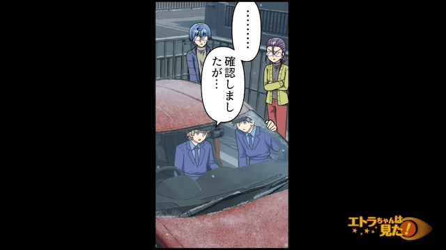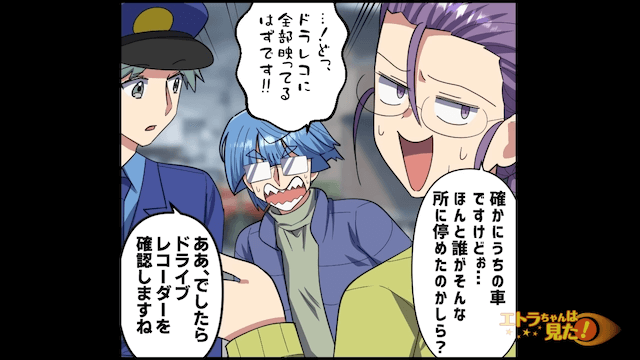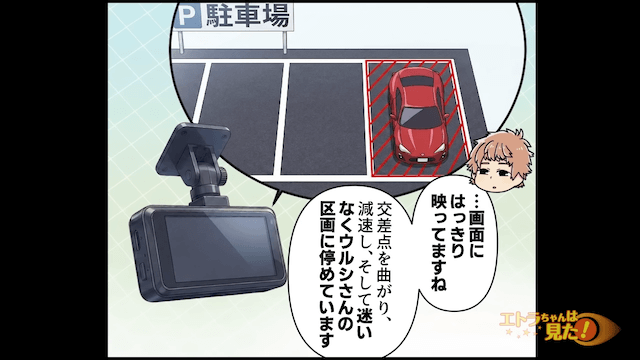 主人公が警察と一緒に隣人の家を訪れると、隣人は「誰がそんなところにとめたのかしら?」とシラを切りました。 そこで警察がドライブレコーダーを確認すると、車が迷いなく主人公の駐車場にとめられたことが判明して…。