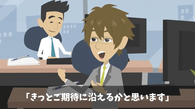 主人公たちの様子を見た社長は「進捗状況は問題ないみたいだね」と言いました。 それに対し主人公たちが「ええ!ご安心ください」「必ず成果を出してみせますよ」と答えると、社長は笑顔を見せて…。