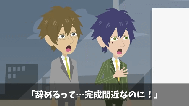 部長たちの態度に我慢できなかった主人公は「わかりました。辞めますね」と言いました。 すると同僚たちは慌てて主人公を止めようとして…。