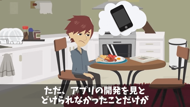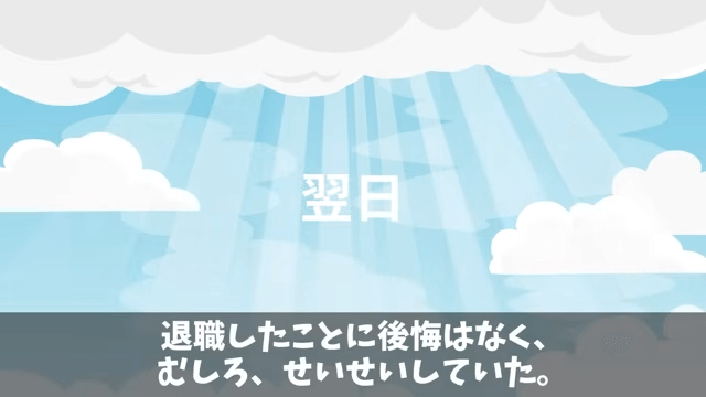 翌日、退職した主人公に後悔はなく、むしろせいせいした気分でした。 しかしアプリの完成を見届けられなかったことだけは悔やんでいたのです。