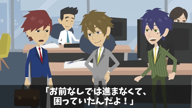 社長に頼まれたため、主人公はアプリ開発メーカーに戻ることにしました。 すると、主人公の姿を見た同僚が「お前なしでは進まなくて、困っていたんだよ!」と言ってくれて…。