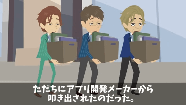 今回は『俺が“会社の要”だと知らない部長「使えないのでクビで(笑)」俺「はーい」⇒速攻、退職した結果』を紹介します。 部長たちがまったく反省していなかったため、社長は「今すぐ、社長室を出たら、荷物をまとめ、アプリ開発メーカーを後にしろ!」と言い放ちました。 そして部長たちは肩を落として社長室から出ていき…。