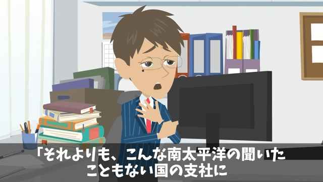 部長は、自分たちが主人公たちよりも格下の扱いをされていることに怒っていました。 すると部長の部下が、それよりも知らない国の支社に出向させられていることのほうが問題ではないかと言い…。