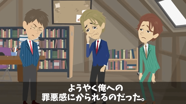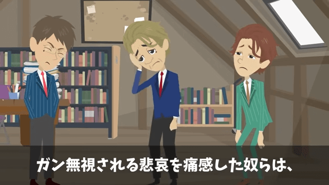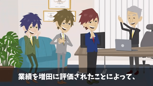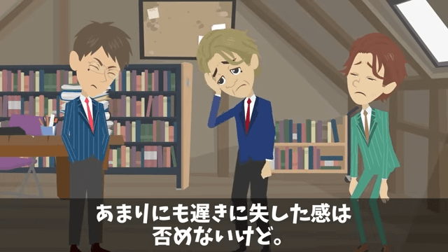 支社員から無視されることになった部長たちは、ようやく主人公への罪悪感にかられるようになりました。 一方、社長からこれまでの業績を評価された主人公たちは…。