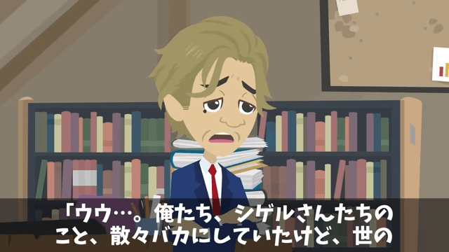 翻訳アプリがアップデートされたため、部長の部下は「やっと、これで他人とコミュニケーションができるわけですね?」と喜びました。 そして部長たちは、いまさらながら泣いて主人公に感謝したのです。