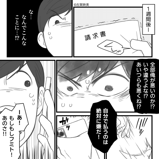 1週間後、請求書を受け取った夫は「自分で払うのは絶対に嫌だ!」と友人たちに電話をかけ…。