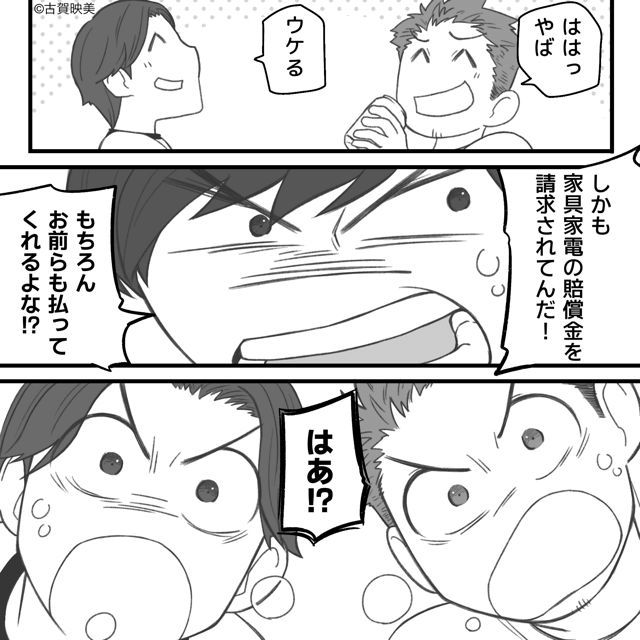 今回は『出張帰り、新居が荒らされていた衝撃の理由』を紹介します。 主人公からの請求書を受け取った夫は「全部俺が悪いのか!?」と青ざめ…。 「自分で払うのは絶対に嫌だ!」と考え、友人たちに電話をかけたのでした。