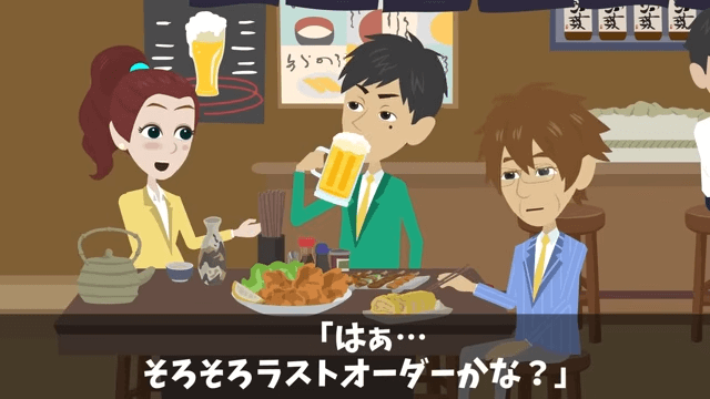 今回は『会社の飲み会で…部長「俺、途中参加だから払わないね(笑)」と言うので⇒次の飲み会で全員“途中参加”した結果』を紹介します。 居酒屋に来ていた女性の部下は「はぁ…そろそろラストオーダーかな?」と言いました。 するとそのとき、課長が「うぃーすっ!」と言いながら現れて…。