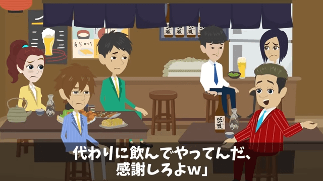 課長は主人公が頼んでいた酒を勝手に飲んでしまいました。 そして課長は「代わりに飲んでやってんだ、感謝しろよ」と主人公に言ったのです。