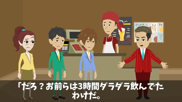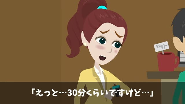課長は「俺が来てから何分経った?」と女性の部下に尋ねました。 そこで女性の部下が「えっと…30分くらいですけど…」と答えると、課長は主人公たちの6分の1の時間しか滞在していないと主張して…。