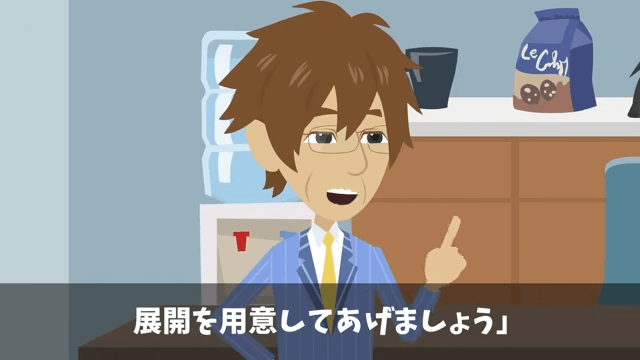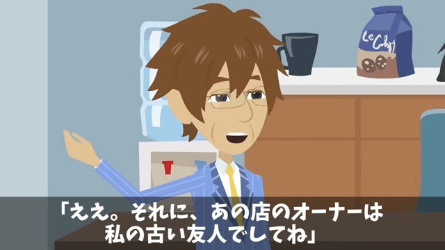 主人公が部下たちに全員で遅刻することを提案すると、男性の部下は「でも、そんなことしたら課長が激怒して…」と言いました。 そこで主人公は、店のオーナーが古い友人であることを説明して…。