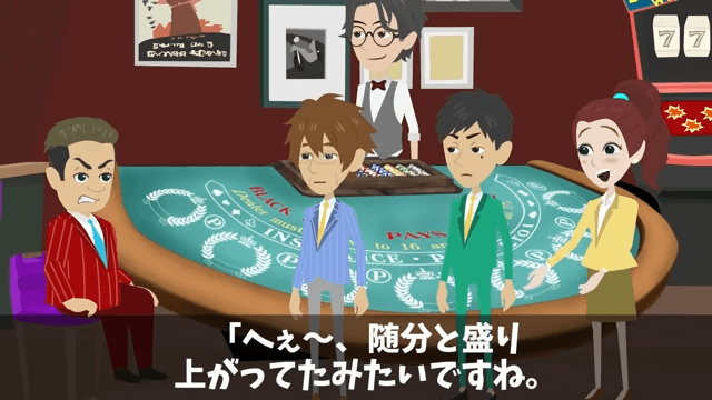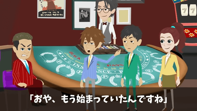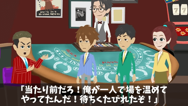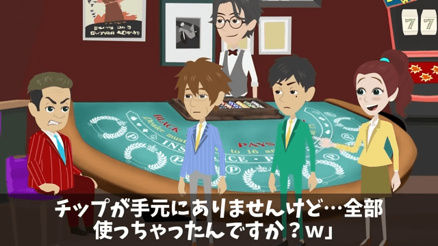 課長は遅れてやってきた主人公たちに「俺が1人で場を温めてやってたんだ!待ちくたびれたぞ!」と言いました。 すると女性の部下が「チップが手元にありませんけど…全部使っちゃったんですか?」と言い…。