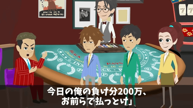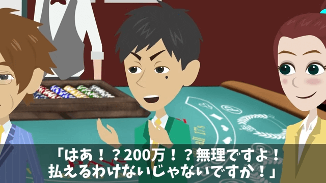 課長は負けた分は主人公たちが払うようにと言い出しました。 それを聞いた男性の部下は「無理ですよ!払えるわけないじゃないですか!」と拒否しますが…。