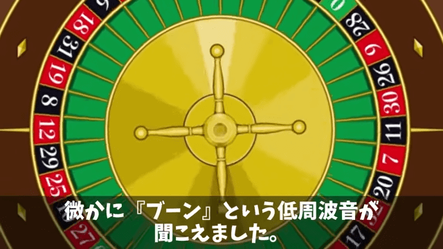 主人公は回転盤のブレーキ音に混じって、低周波音が聞こえたと言います。 すると店長は「そ、空耳でしょう。あなたの聞き間違いです」と言い…。