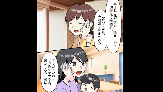 体調不良のときでさえ協力してくれない夫に我慢の限界を感じた主人公。 そこで主人公が夫の友人の妻に相談すると、夫の友人の妻も離婚を考えていると打ち明けてくれました。