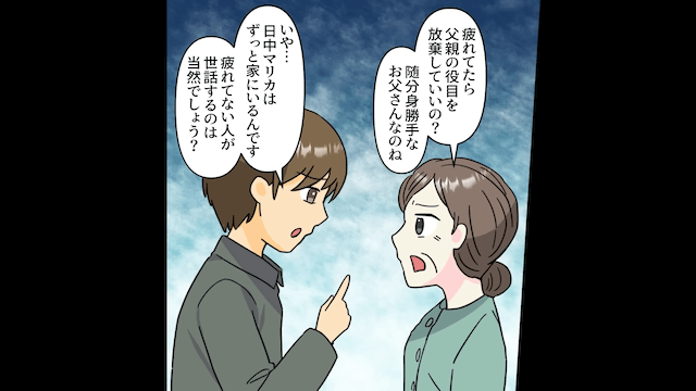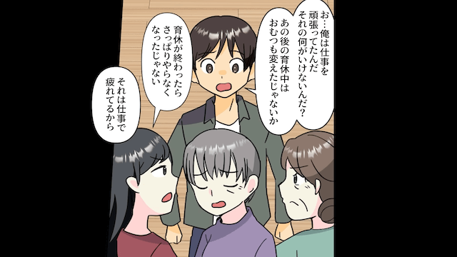 主人公が離婚届にサインを求めると、夫は「1年様子を見てくれよ」とすがってきました。 するとそこに母と義母が現れ、夫を責めたのです。
