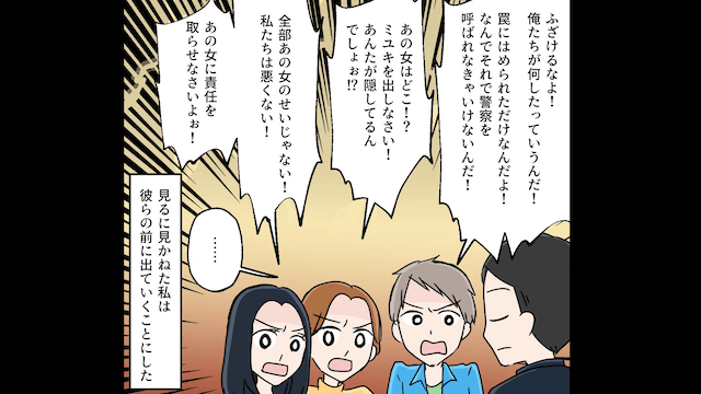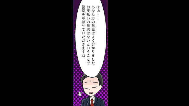 支払いの意思がないと判断した支配人が警察を呼ぼうとすると、焦った夫たちは主人公に罪をなすりつけようとして…。