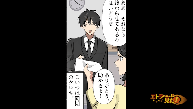 今回は『ネチネチ上司「仕事終わったのか?」私「終わりました」直後⇒私「ついでにあなたも終わらせました」上司「え?」』を紹介します。 市内の会社で働く主人公は、就職してしばらく経ち、仕事にも慣れてきたところでした。 そんなある日、同僚に「今日はやけにご機嫌だな」と言われた主人公は、仕事が定時で終わりそうだからだと答えて…。