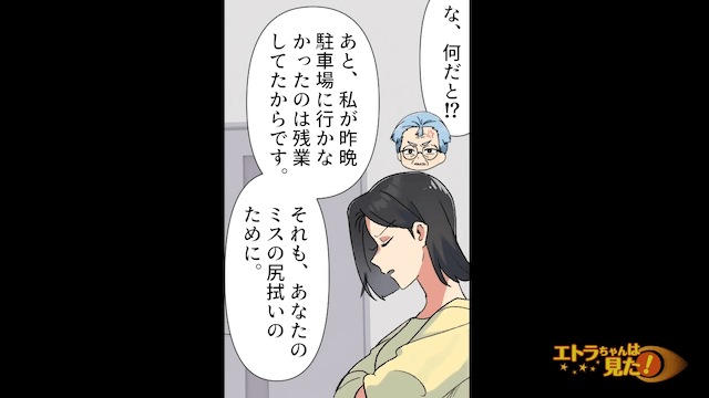 今回は『ネチネチ上司「仕事終わったのか?」私「終わりました」直後⇒私「ついでにあなたも終わらせました」上司「え?」』を紹介します。 説教をするために駐車場で主人公を待っていた元上司は、駐車場に来なかった主人公を一方的に責めてきました。 主人公が困惑していると、元上司は「昨日はなにをしてたんだ!?」と怒鳴ってきて…。