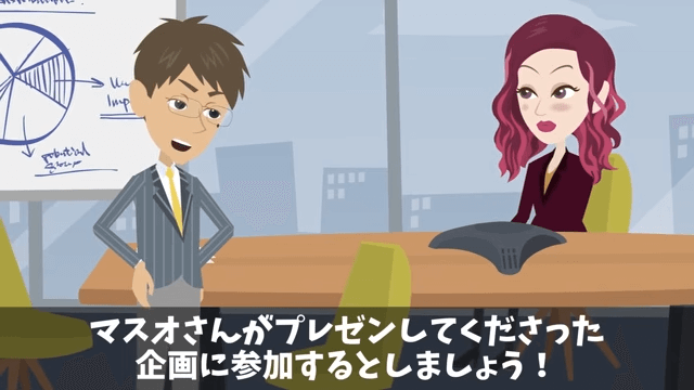 今回は『上司「プレゼン資料作れ!発表は俺(笑)」俺「はーい」しかし当日⇒俺の意図に気づき上司絶句』を紹介します。 主人公のプレゼンを聞いた取引先の社長は「もちろん私たちもこの取引に乗らせてもらうわよ!」と言いました。 そして取引先の社長は「専務も当然この選択に異論はないわね?」と確認して…。