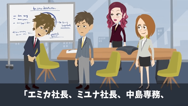 今回は『上司「プレゼン資料作れ!発表は俺(笑)」俺「はーい」しかし当日⇒俺の意図に気づき上司絶句』を紹介します。 主人公のプレゼンを聞いた取引先の社長は「もちろん私たちもこの取引に乗らせてもらうわよ!」と言いました。 そして取引先の社長は「専務も当然この選択に異論はないわね?」と確認して…。