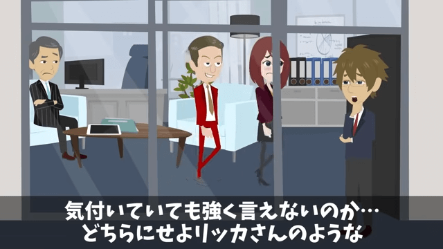 主人公は社長が上司のことに気づいていないのか、それとも気づいていて強く言えないのか考えます。 そして主人公は、いずれにしてもこのままではよくないと思いました。