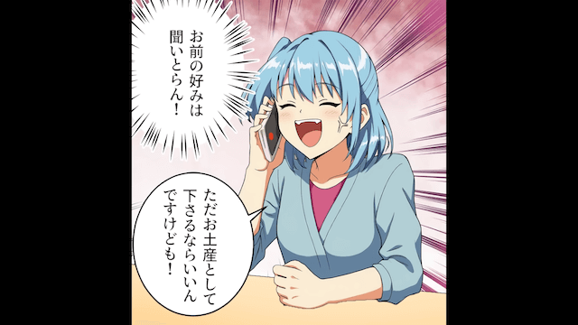 主人公は義姉の機嫌をとってお土産を頼み、お金を渡しました。 しかし着払いで届いたお土産は頼んでいた商品とは違っていて…。