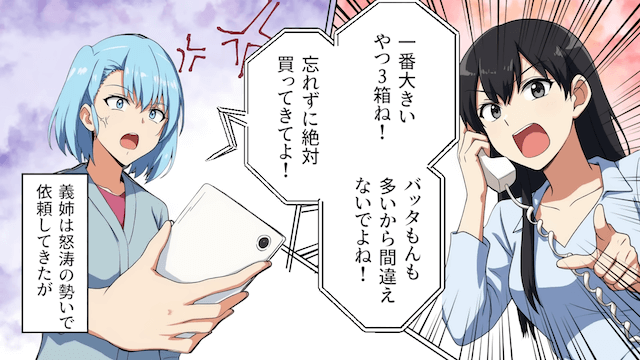 夫と旅行することになった主人公は、義父にお土産の好みを聞くために電話をかけました。 すると会話に割り込んできた義姉が強引にお土産をねだってきたのです。