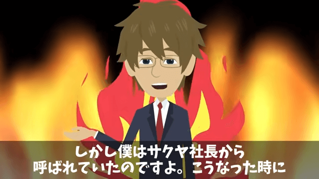 主人公が現れると、上司は「な、なぜだ!なぜお前がこのプレゼンの場に来ているんだ!」と困惑しました。 そこで主人公は、すべてを明らかにするために社長に呼ばれていたことを上司に明かしたのです。