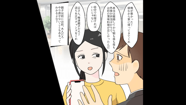 主人公や義父にすがる夫