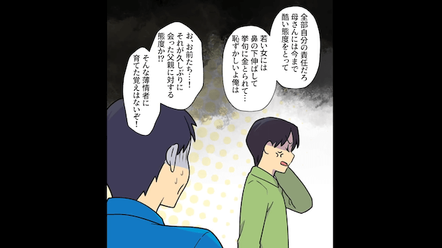 今回は『夫「更年期に甘えるお前に疲れた。離婚してくれ。」⇒長年尽くした妻を捨てた夫の末路』を紹介します。 離婚後、若い女性にだまされて貯金を失ってしまったと話す夫。 すると娘は夫に冷たい目を向け「それで仮病使って私たちを呼び寄せて、一緒に暮らしてもらおうとか考えてるんだ?」と言い放ち…。