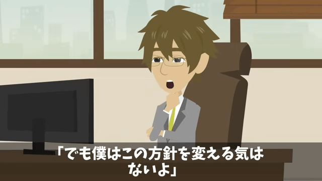 秘書の話を聞いた主人公は「確かにそれはそうかもしれないね?」と言ってから「でも僕はこの方針を変える気はないよ」と言い切りました。 それを聞いた秘書は「えぇっ!?どうしてですか!」と驚きます。