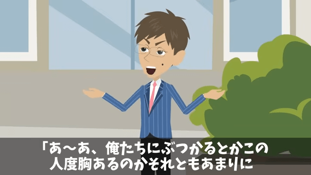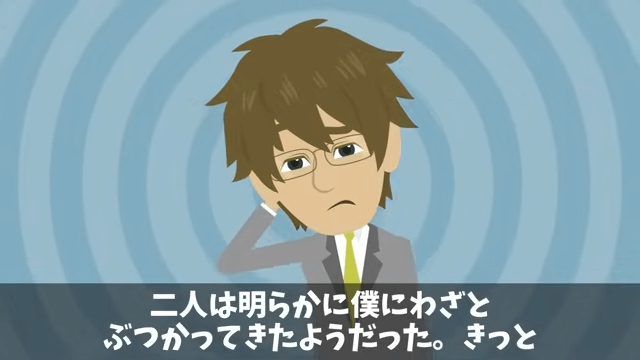 主人公にぶつかってきた女性は「ボケッとしないでいただけますかあ?」と言いました。 そしてそばにいた男性は「あ~あ、俺たちにぶつかるとかこの人度胸あるのかそれともあまりにトロすぎるのか…」と呆れたのです。