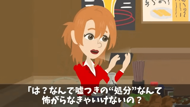 主人公はこのまま歓迎会に来ないなら相応の処分が必要になると言いました。 しかし新人の女性は一切怯まず「なんで嘘つきの処分なんて怖がらなきゃいけないの?」と言い返してきて…。