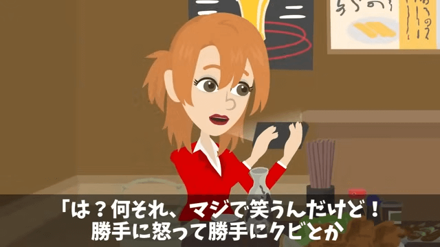 我慢できなくなった主人公は、新人全員に即日解雇を言い渡しました。 すると新人の女性は「何それ、マジで笑うんだけど!勝手に怒って勝手にクビとか言い出したし!」と呆れて…。