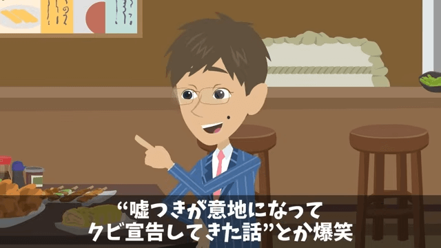 今回は『新入生歓迎会で…80人が全員ドタキャン「中卒が開いた歓迎会なんていくか(笑)」⇒俺の正体を明かした結果』を紹介します。 主人公は新人たちにクビを言い渡し「みなさんがいい再就職先に巡り会えることをお祈りしています」と言いました。 しかしそれを聞いても新人の女性は主人公の話を信じず…。