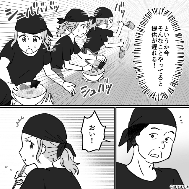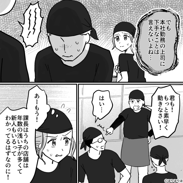 店内は大忙しでお客さんが並んで待っているにもかかわらず、バイトに説教を始めた課長。 しかし主人公は課長を注意することができず、自分の仕事を優先するのでした。