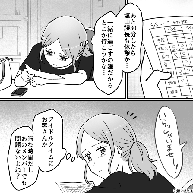 主人公が休憩しているあいだ、店内では課長の怒鳴り声が響いていて…。