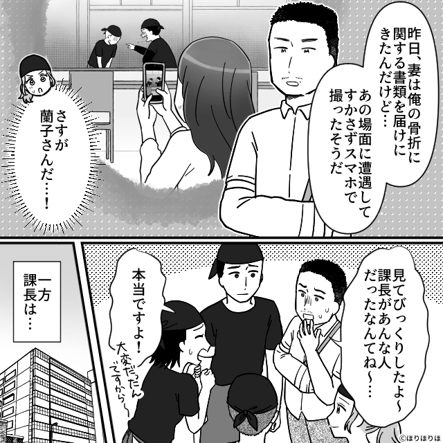 課長のパワハラの証拠を撮った店長の妻は、本社に報告してくれたのでした。