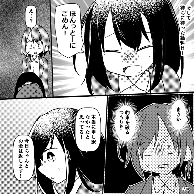 今回は『私の同期はモンスター。』を紹介します。 同僚はお金がないと打ち明け、タクシー代は給料後に返すと言ってきました。 主人公は渋々「わかったよ…」と答え…。