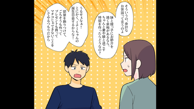 今回は『家族より”姪っ子”を優先する夫「あの子のほうが可愛い(笑)」妻「もう限界」⇒出ていった結果』を紹介します。 夫は姪の誕生日会を企画し、主人公に「あいつはシングルだろ?大変なことは、余裕がある俺らが手伝ってやらないと…」と言いました。 しかし義妹に直接、手伝ってほしいと頼まれたことはないようで…。