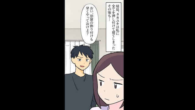 夫は勝手に姪の誕生日会を企画し「お前、ちゃんとやっておけよ」と主人公にすべてを丸投げしてきました。 主人公は誕生日会当日は予定があるからと準備を拒否しますが、夫は「家族としてお前も協力するのが当然だろ?」と言い、その後もことあるごとに準備を催促してきて…。