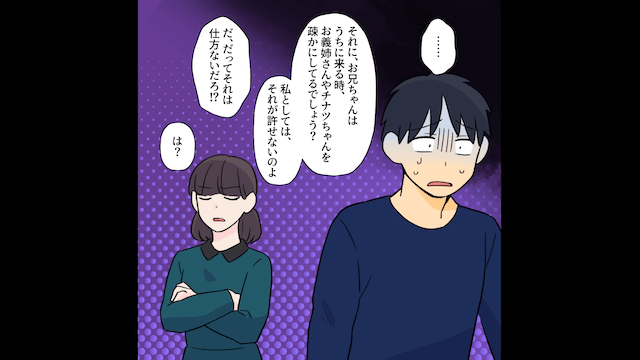 義妹の家で誕生日会が行われることを知った夫は、自分が呼ばれなかったことにショックを受けます。 さらに義妹に家族を疎かにしていることが許せないと言われた夫は、時間もお金もない義妹に協力しないといけないと思ったのだと言いますが…。