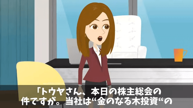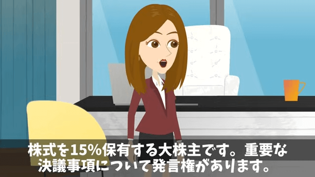 主人公が社長をしている建設会社は年商150億円の中堅企業として、地域密着型の建設事業を展開しています。 そしてある日、秘書が今日の株主総会について主人公に伝えてきて…。