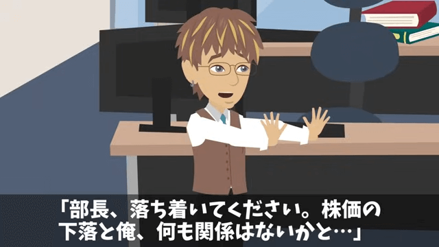 投資会社の部長は「お前のせいで会社が大変なことになってるぞ!」と男性社員に言いました。 それに対し男性社員は「株価下落と俺、何も関係はないかと…」と言いますが…。